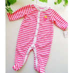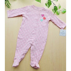 毎年人気のカーターズ足つきカバーオール。 こちらはパイル地のカバーオールはです。 ピンクとホワイトのボーダーデザインにイチゴのアップリケが可愛いですよ♪ スナップで首元から足首まで簡単着脱。 たくさん動いてもおなかがでないのでハイハイ赤ちゃんにもオススメです。 ご自宅用として、ご出産のお祝いにも大・・・
