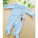 毎年人気のカーターズ足つきカバーオール。水色地に犬とお猿のアップリケがあります。 つま先まで覆ってくれるので抱っこしてもずり上がらずベビーカーでのお出かけ時にも重宝してくれますよ!!靴下もいりません! ファスナーで首元から足首まで簡単着脱。 たくさん動いてもおなかがでないのでハイハイ赤ちゃんにも・・・